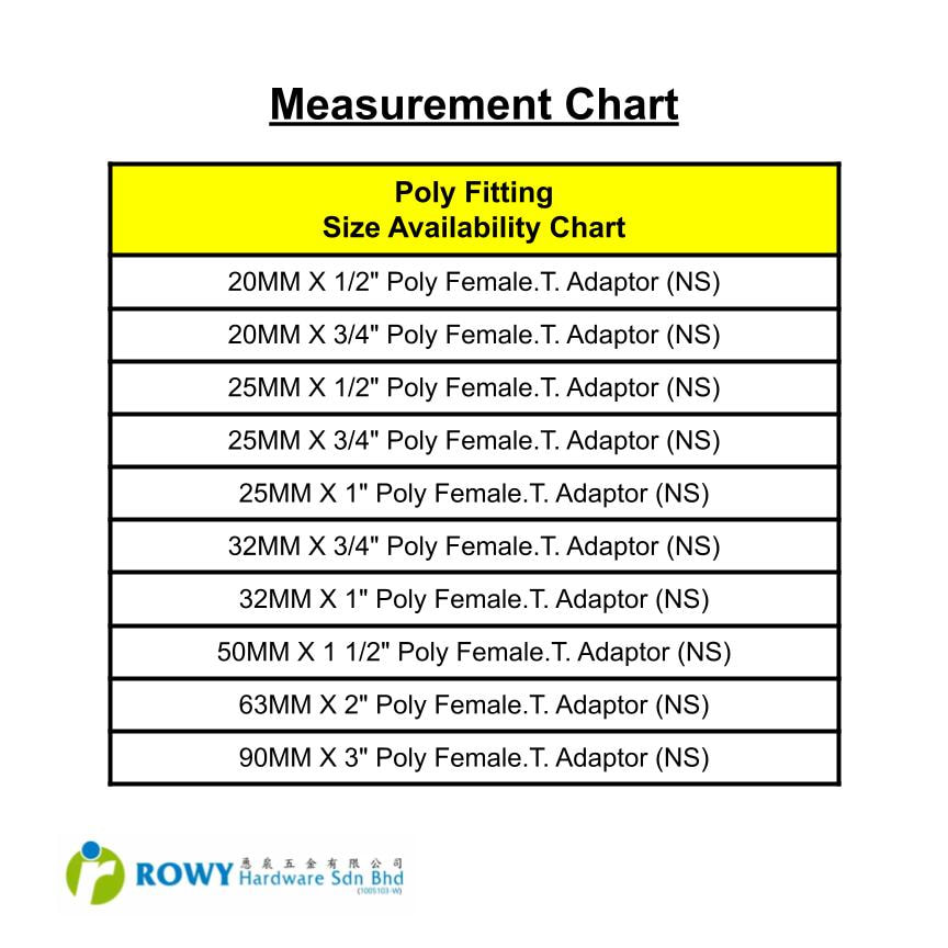 - Poly Female Threaded Adapter 20mm X 1/2 To 110mm X 4 Poly Pipe Fittings Sirim Or Non Sirim PN16
